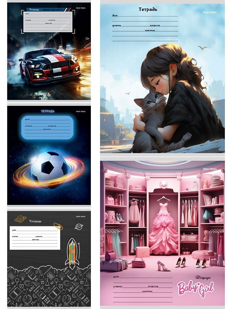 Тетрадь А5 12л лин. Проф-Пресс "Разнообразный микс" 5диз.в спайке