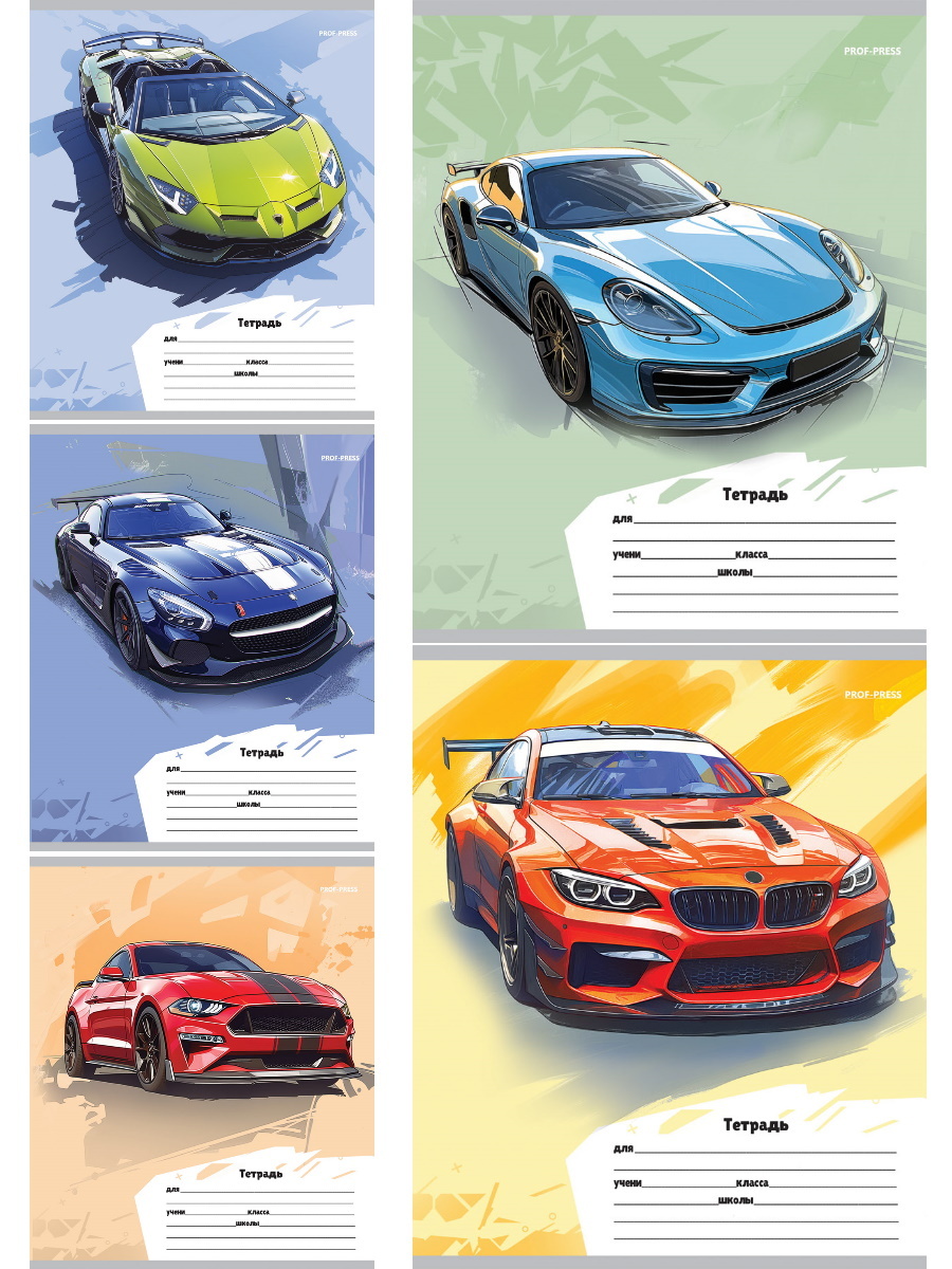 Тетрадь А5 12л лин. Проф-Пресс "Разные автомобили - 6" 5диз.в сп.,бел.100%