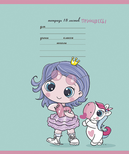 Тетрадь А5 18л кл. ПЗБМ "Девочки принцессы" выб.УФ-лак, белизна 100%