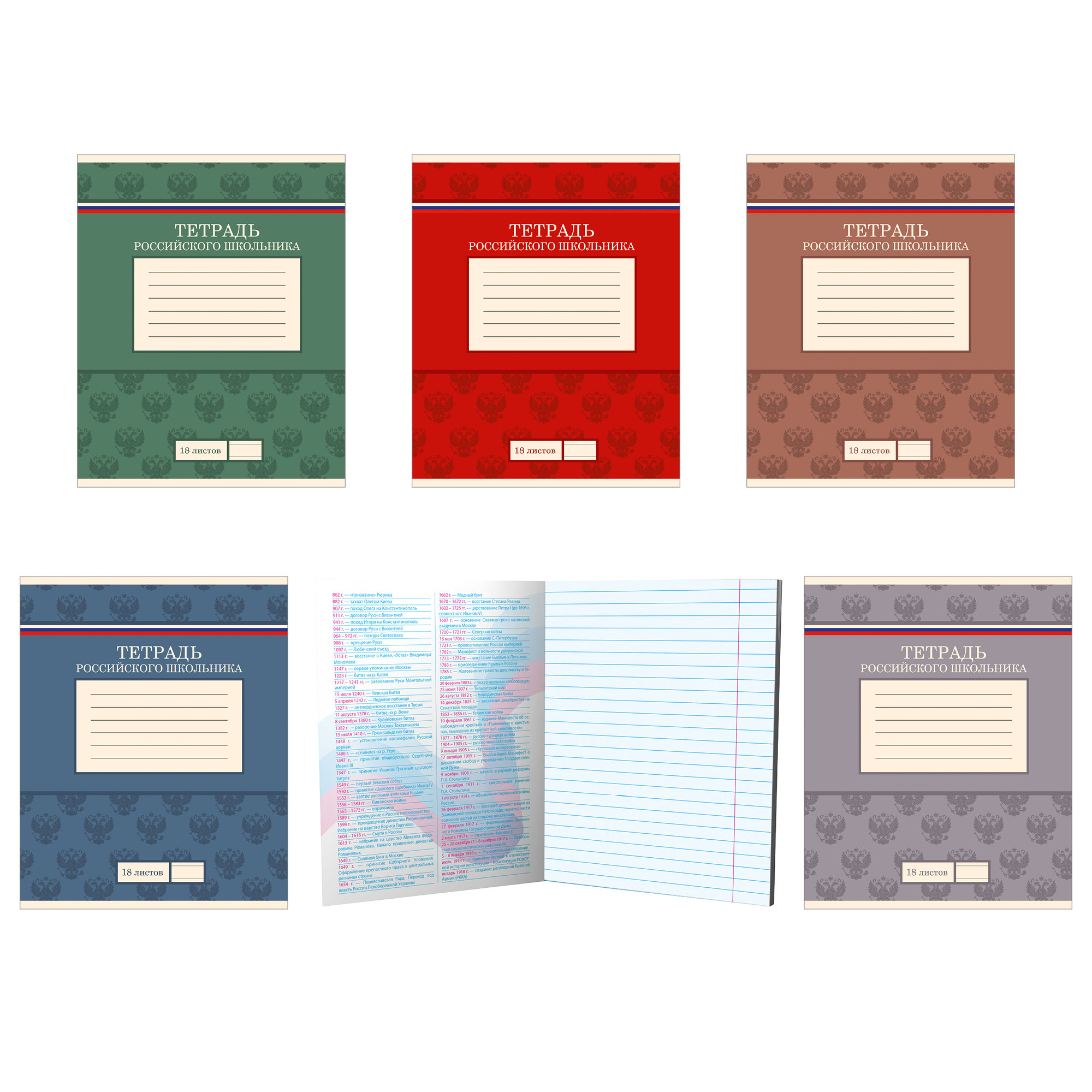 Тетрадь А5 18л лин. Полиграф Принт "Тетрадь российского школьника" белизна 100%