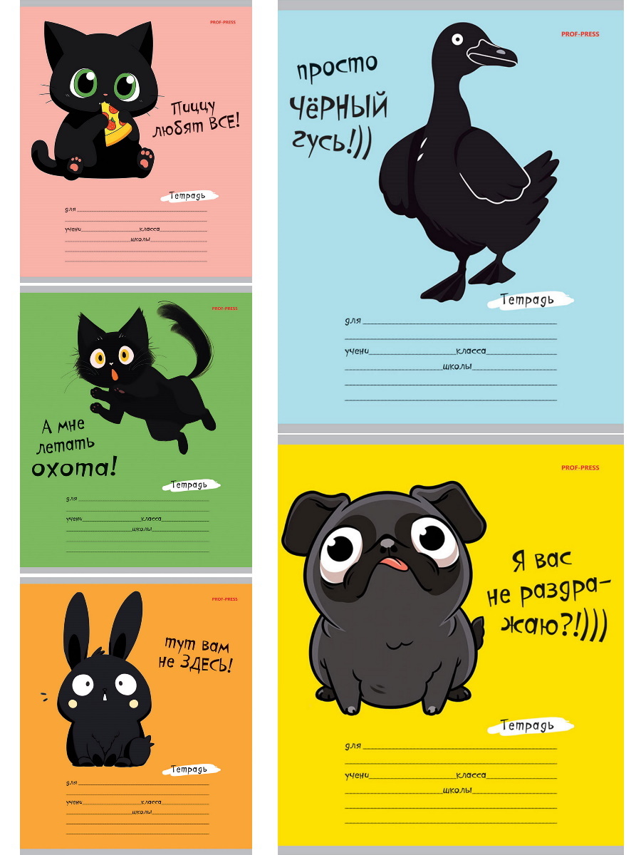 Тетрадь А5 18л лин. Проф-Пресс "Зверята и надписи" 5 диз.в спайке, белизна 100%