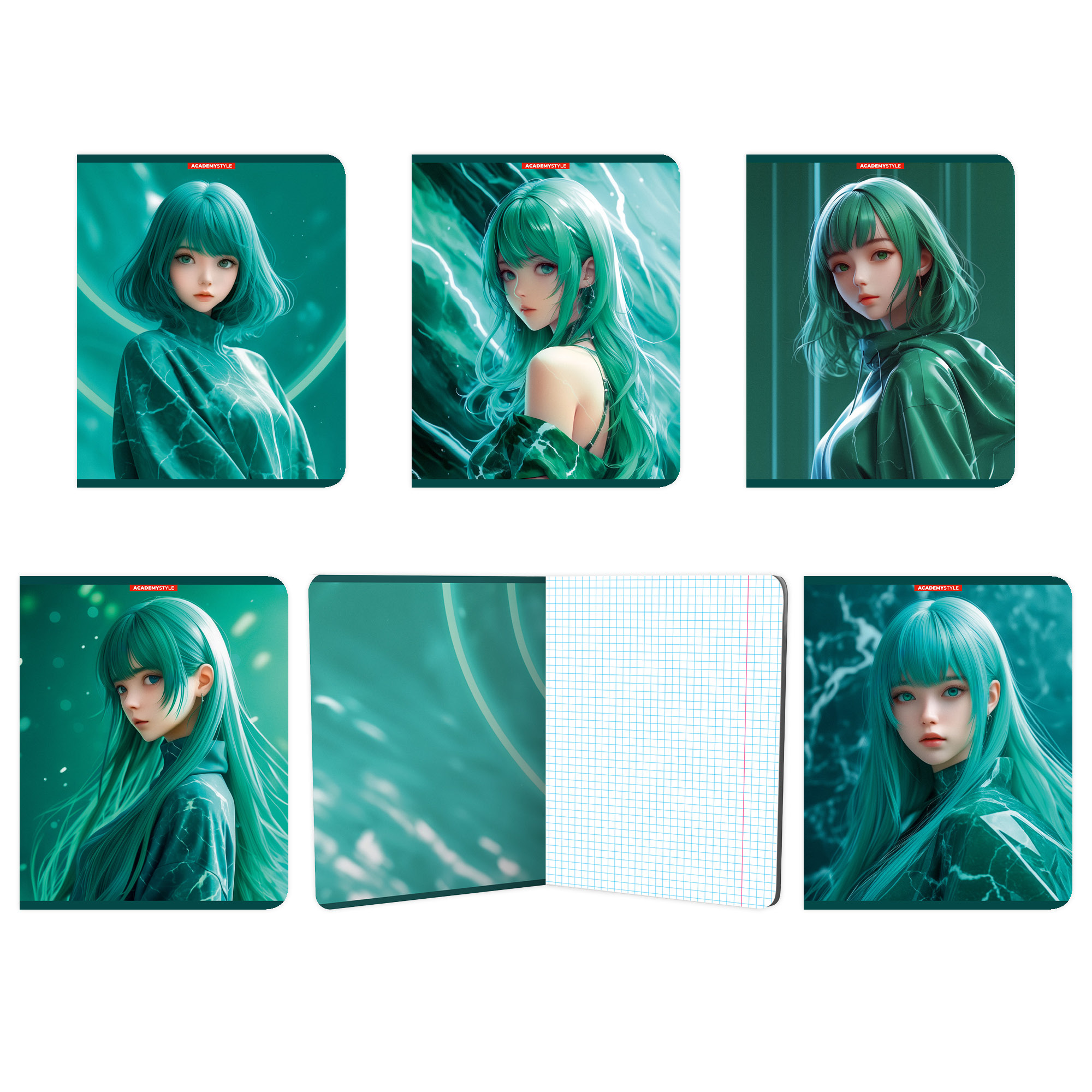 Тетрадь А5 48л кл. Academy Style "Девушка в зеленом" мерцающий песок
