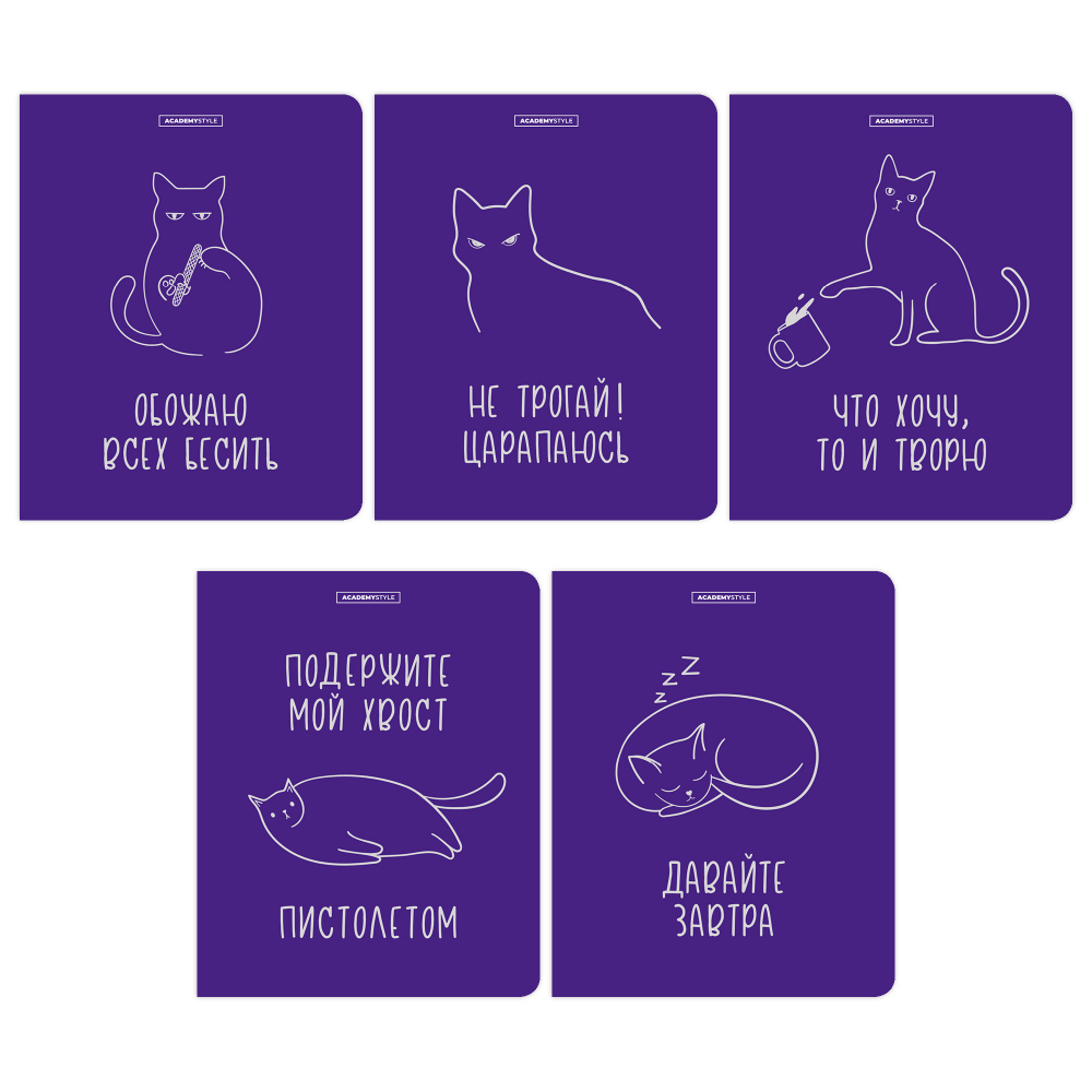 Тетрадь А5 48л кл. Academy Style "Кошачье настроение" твин. УФ-лак