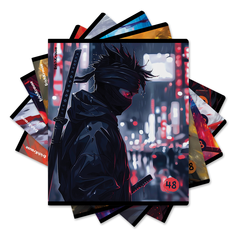 Тетрадь А5 48л кл. Erich Krause "Samurai" УФ-лак выборочный+ламинация матовая MIX-PACK