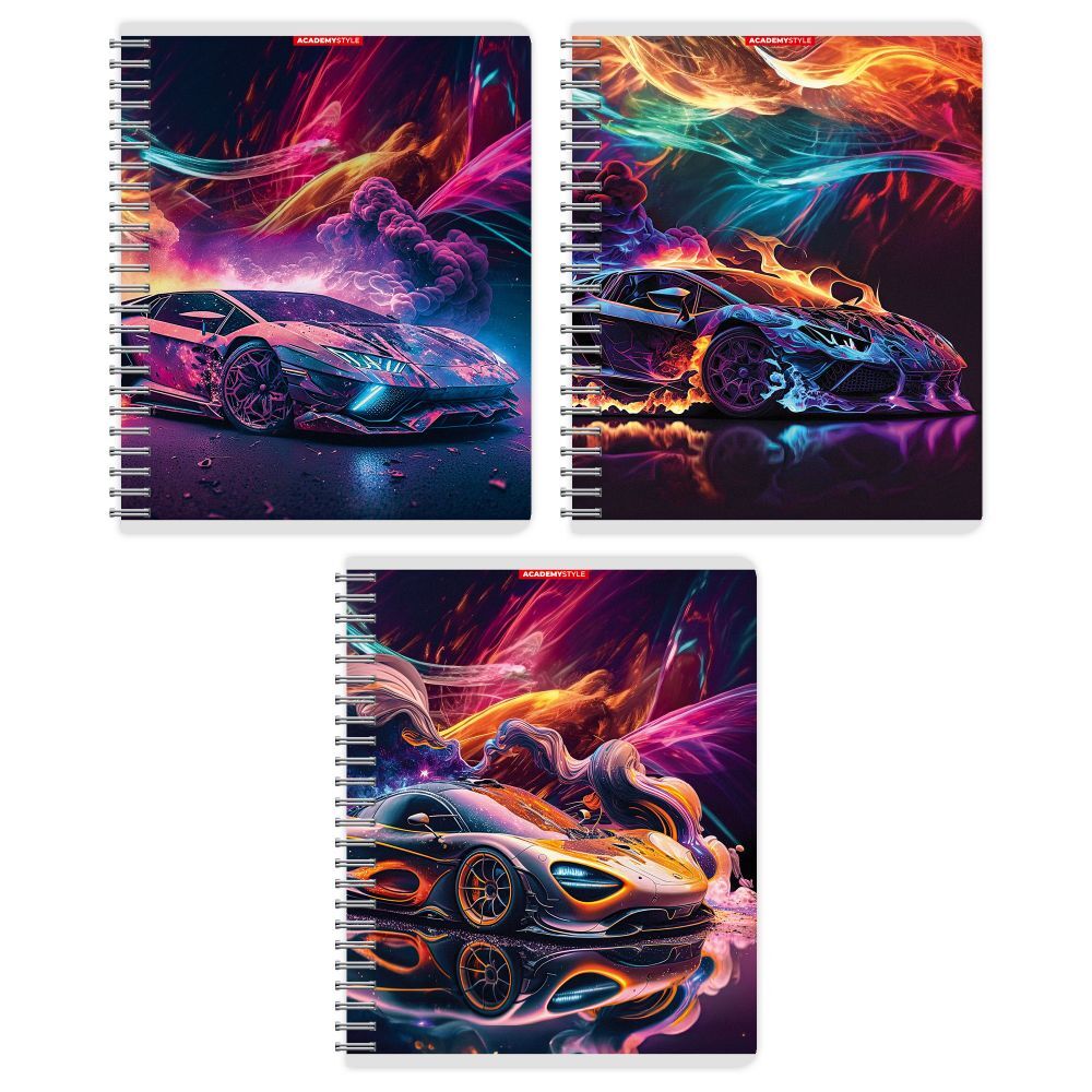 Тетрадь А5 48л кл. гребень Academy Style "Пламенные тачки" метал.пленка, УФ-лак