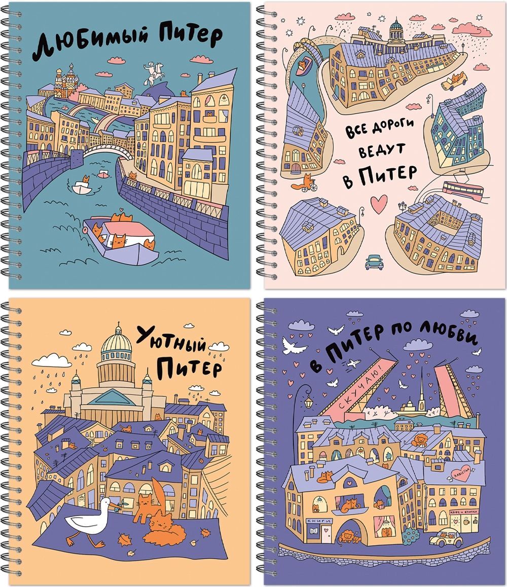 Тетрадь А5 48л кл. гребень Полином "Piterские коты" ВД-лак, БЕЗ ПОЛЕЙ*