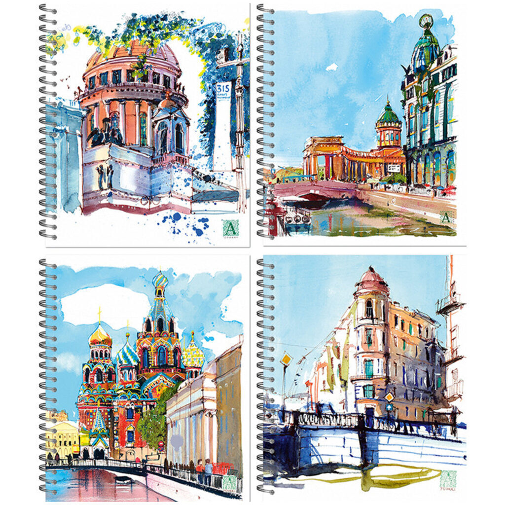 Тетрадь А5 48л кл. гребень Полином "Питерские скетчи", БЕЗ ПОЛЕЙ