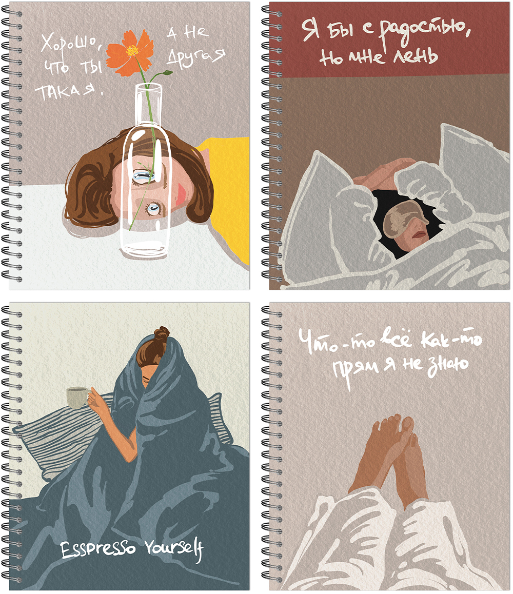 Тетрадь А5 48л кл. гребень Полином "Прокрастинация или Мне Просто Лень" софт-тач, БЕЗ ПОЛЕЙ