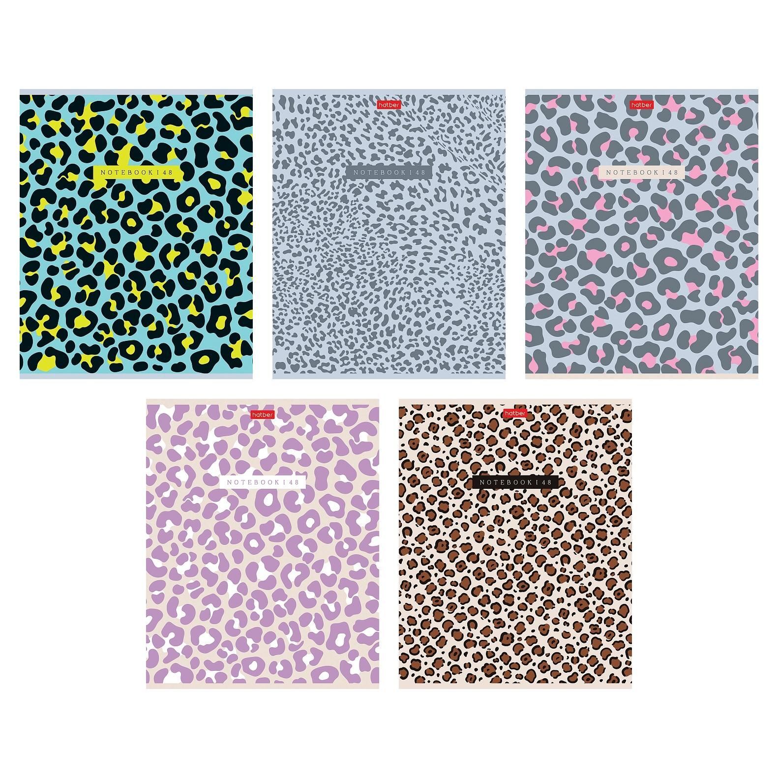 Тетрадь А5 48л кл. Hatber "LEO-принт" тисн., 5 диз.в блоке