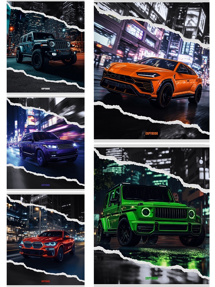 Тетрадь А5 48л кл. Проф-Пресс "Яркие машины в городе" твин-лак., 5диз.в спайке