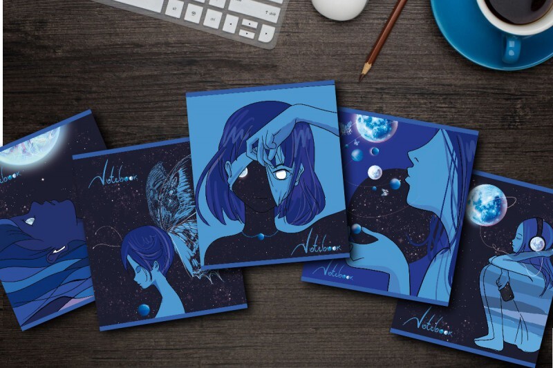 Тетрадь А5 48л кл. ПЗБМ "Космо" софт.тач, мат. лам., глиттер, 5диз.в блоке, бел.100%