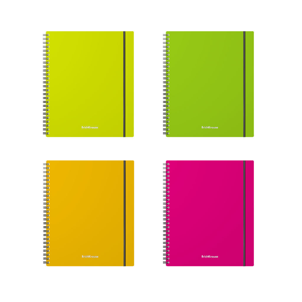Тетрадь А5 80л кл. гребень Erich Krause "Neon", пластик. обложка, клетка, резинка