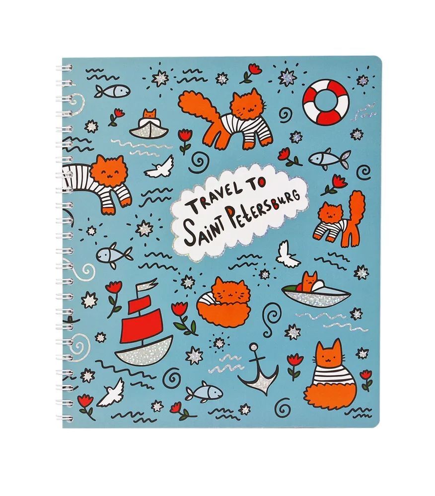 Тетрадь А5 80л кл. гребень Полином пласт.обл. "Питерские коты" фольга, бел.100%, БЕЗ ПОЛЕЙ