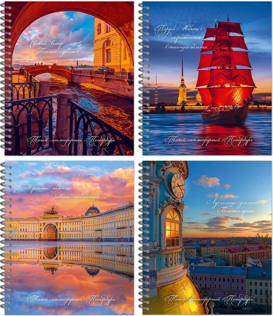 Тетрадь А5 96л кл. гребень Полином "Атмосферный Петербург" УФ-лак, БЕЗ ПОЛЕЙ