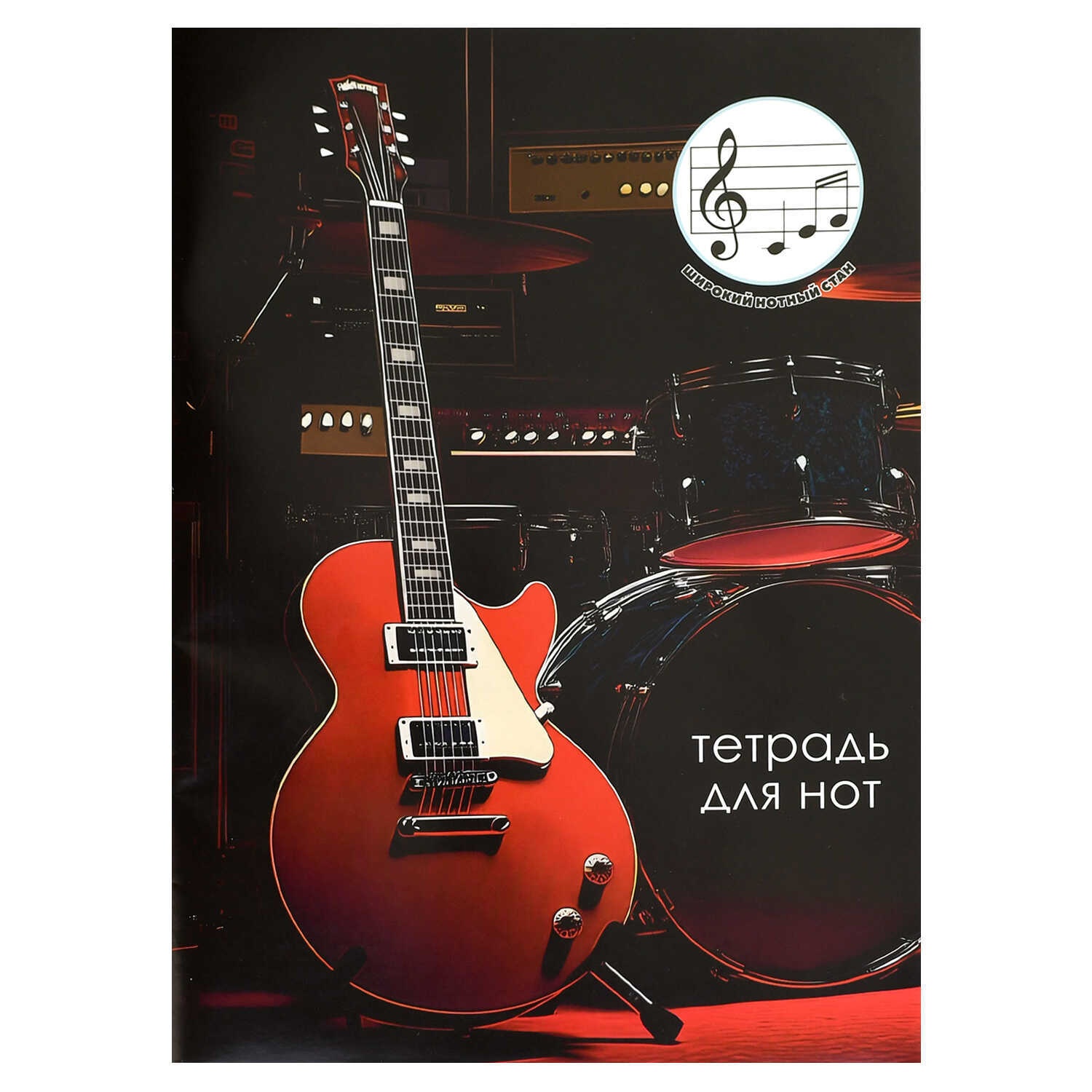 Тетрадь для нот А4 12л., расшир.нотный стан, скоба "Красная гитара"