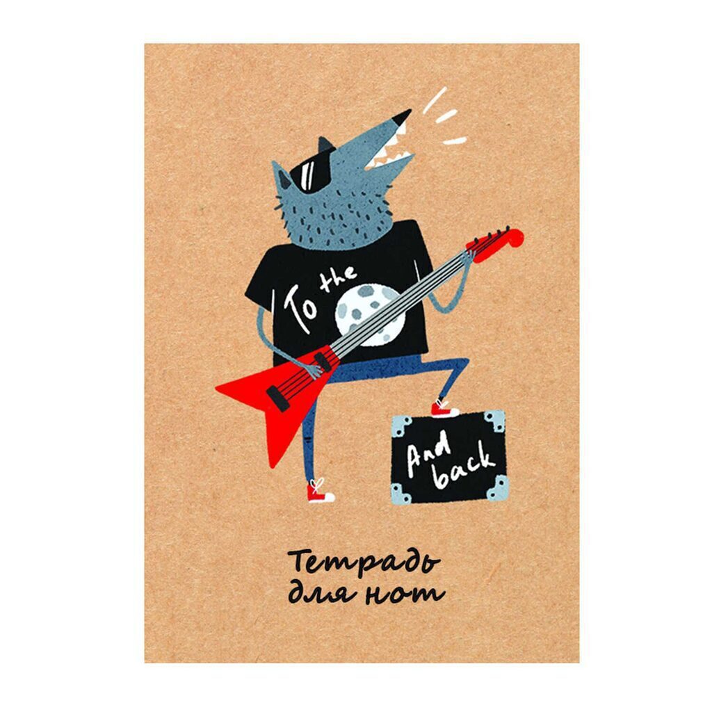 Тетрадь для нот А4 16л., вертик., скоба "Волк гитарист"