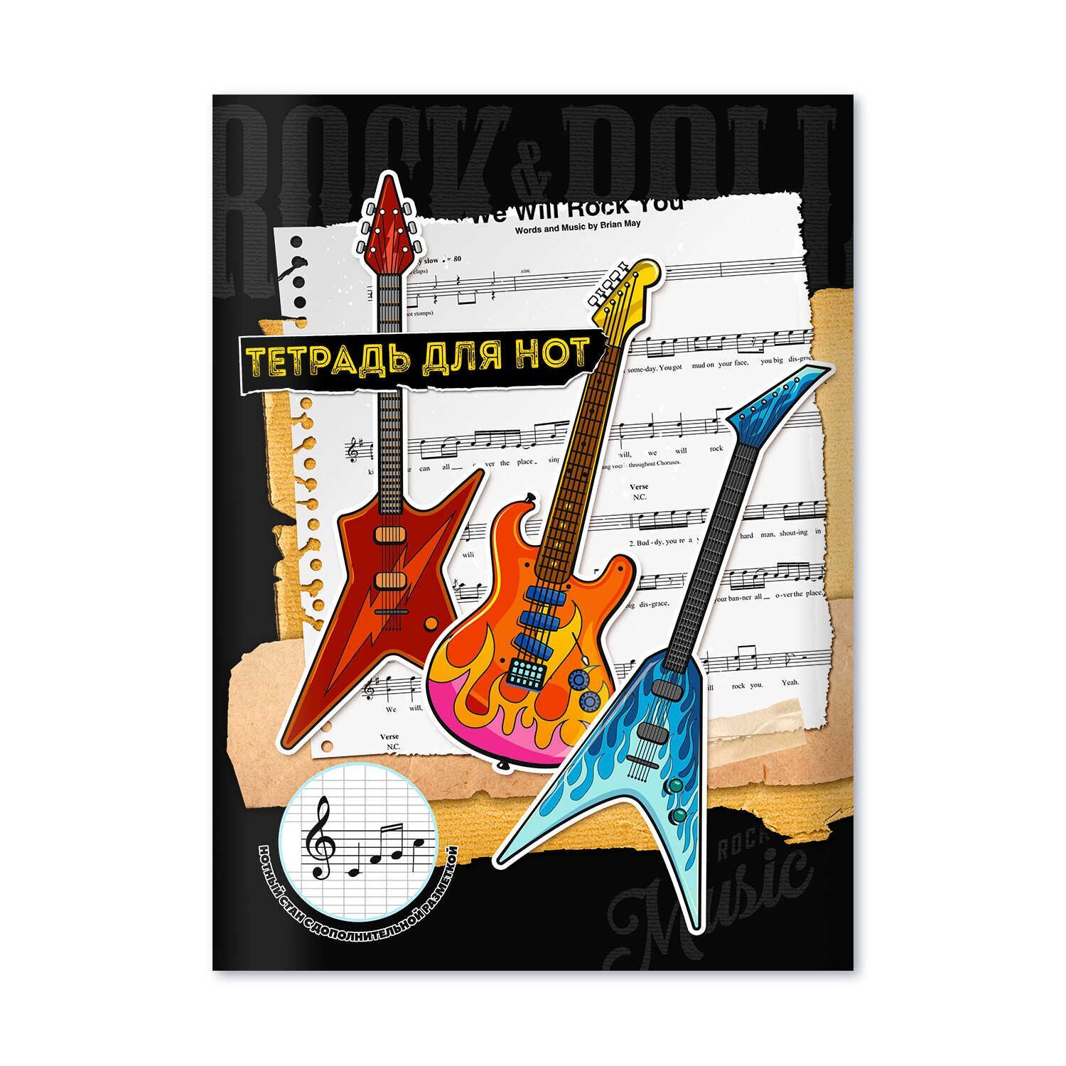 Тетрадь для нот А4 16л., вспом.линии нотного стана, вертик., скоба "Рок музыка"