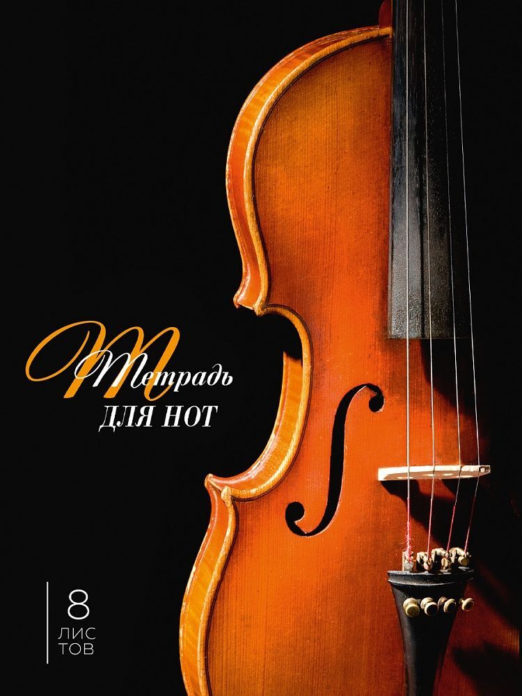 Тетрадь для нот А4 8л., вертик., скоба "Скрипка на черном"