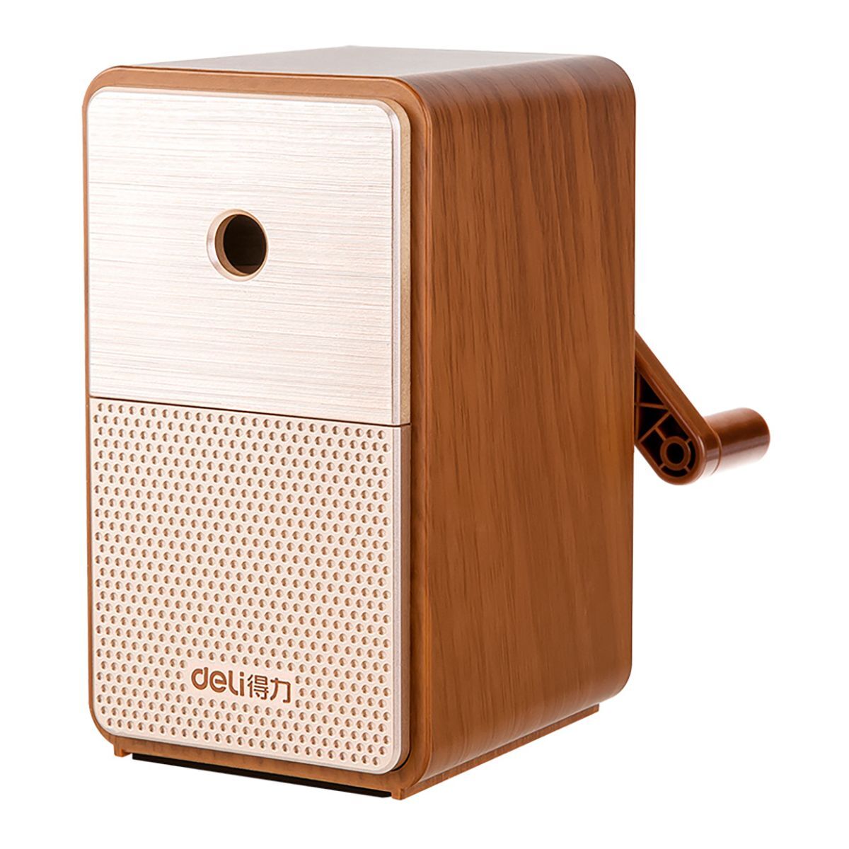 Точилка Deli механическая для карандашей в стиле ретро. Корпус изготовлен из ABS-пластика. Точилка с одним отверстием благодаря регулировке диаметра подойдет для заточки карандашей 6.9, 8 мм, а так же любой формы: трех и шестигранной. Точилка оснащена индикатором регулировки заточки толщины и остроты грифеля. Оборудована противоскользящим покрытием, благодаря чему затачивать карандаши можно одной рукой. Высококачественное стальное лезвие и точно рассчитанная конструкция, позволяют сделать процесс затачивания не только легким, но и сводят риск поломки грифеля к нулю. Настольная механическая точилка для карандашей имеется вместительный резервуар для стружки.