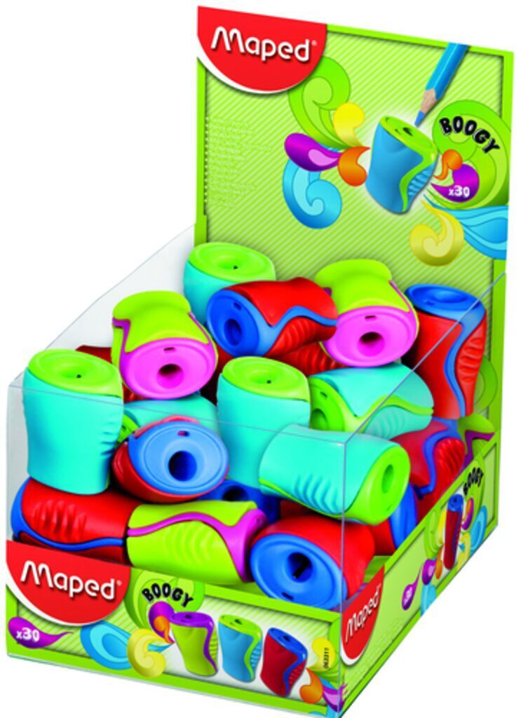 Пластиковая точилка с резиновыми противоскользящими вставками, с контейнером для сбора стружки. Отверстие для заточки стандартных чернографитных и цветных карандашей. Высококачественное лезвие из углеродистой стали.
