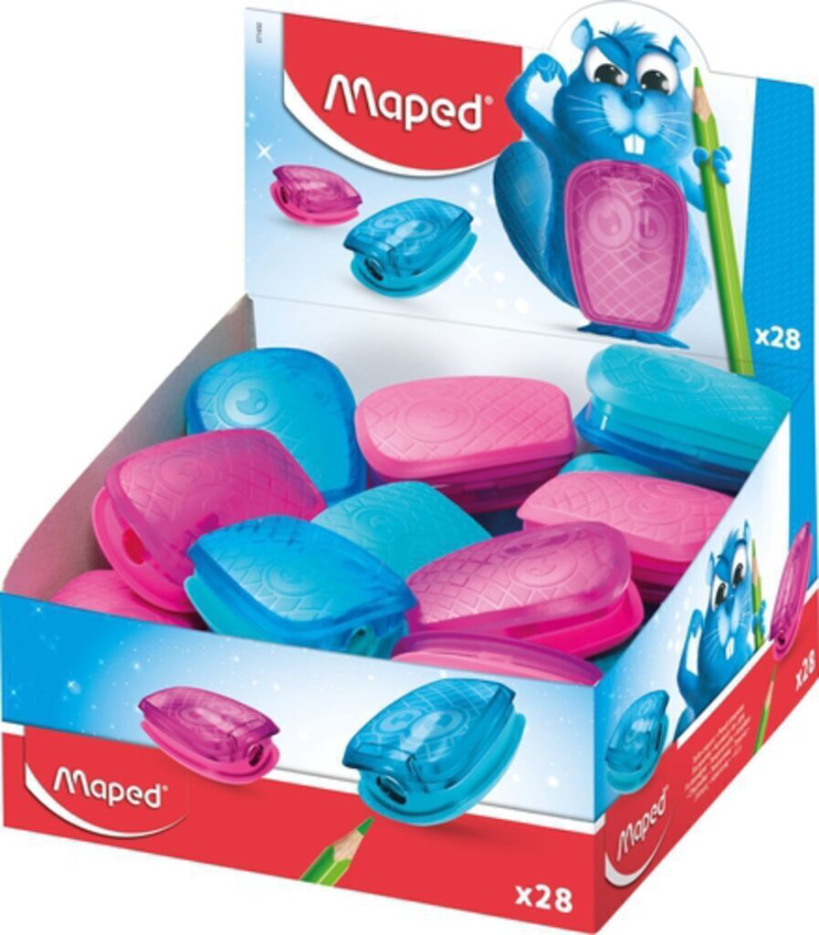 Пластиковая точилка с контейнером для сбора стружки. Отверстие для заточки стандартных чернографитных и цветных карандашей. Высококачественное лезвие из углеродистой стали.