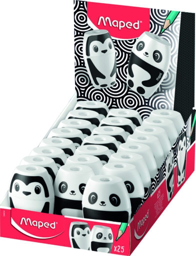 Точилка Maped SHAKKY 1 отв, с контейнером, декорированная, ассортиТочилка Maped Shakky 1 отверстие, с контейнером. Прочная точилка из ударопрочного пластика с удобным вместительным контейнером для стружки. Анималистический дизайн - Панда,Пингвин. Фирменное лезвие с логотипом Maped обеспечивает качественную и точную заточку. Гладкий эргономичный корпус - удобно держать в руке. Компактная и легкая. 1 отверстие (8 мм).