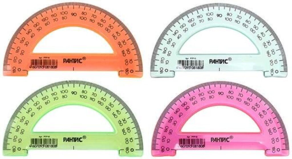 Транспортир 180гр. 10 см пласт. прозр.цветной