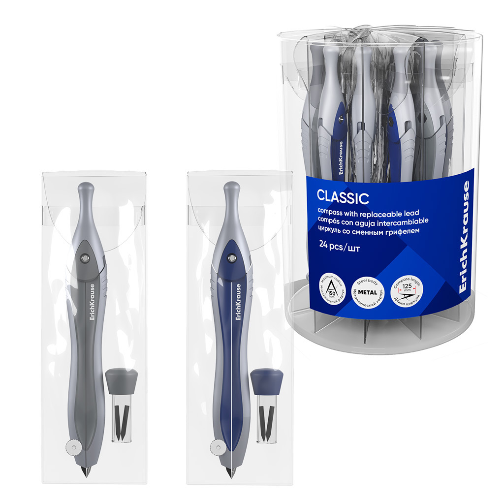Циркуль металл. EK "Classic" 125мм, с грифелями, в пласт. футляре, ассорти