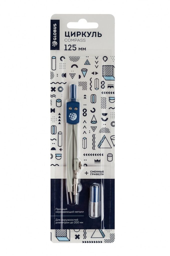 Циркуль металл. Globus " School" 125мм +зап.грифель, блистер