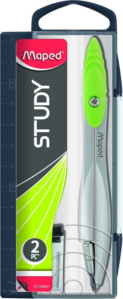 Циркуль для черчения Study. Комплект: циркуль с грифелем, упак. грифелей. Длина циркуля 12 см. Металлические штанги. . Футляр со сдвигающейся крышкой