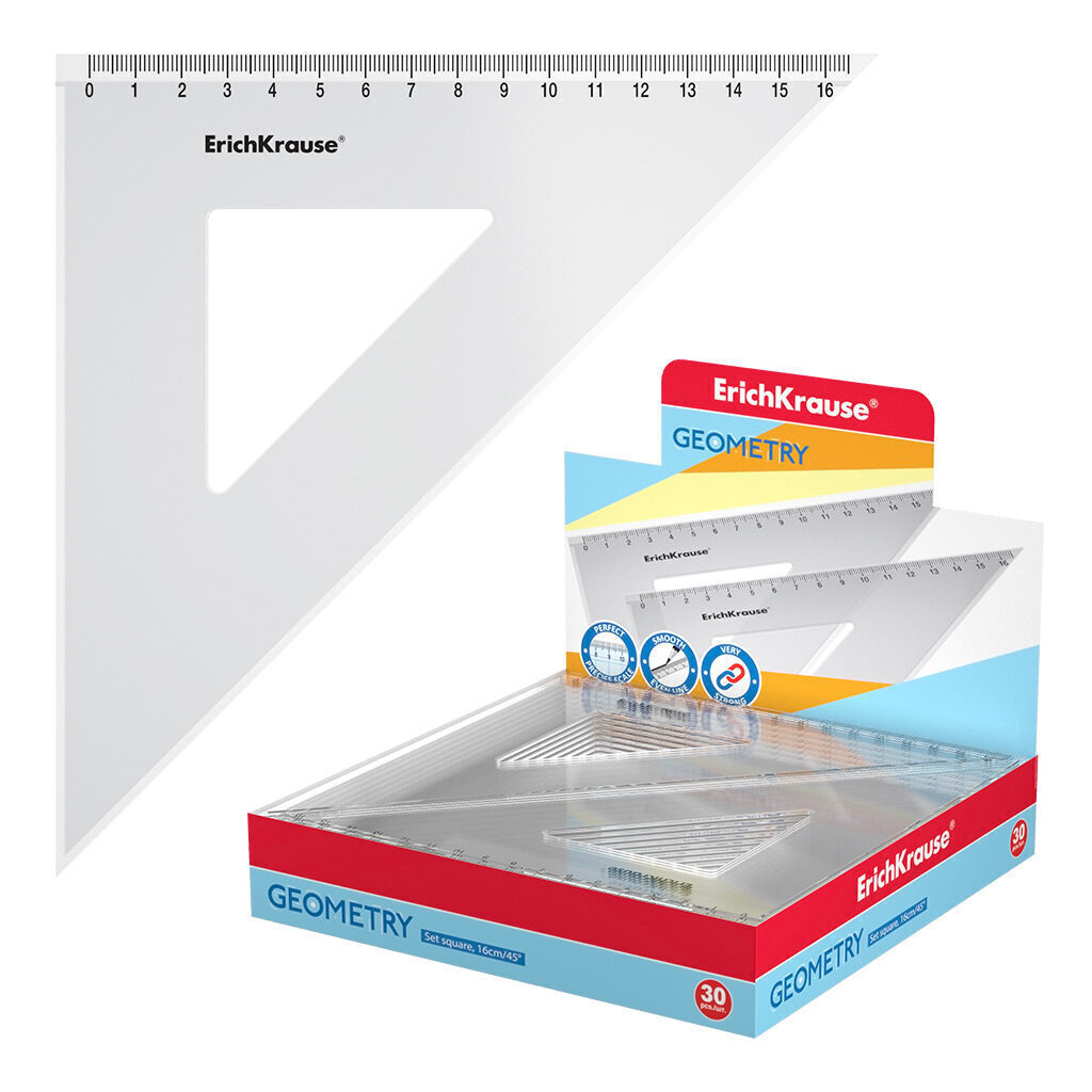 Угольник пласт. 16см 45гр. Clear , прозр., дисплей