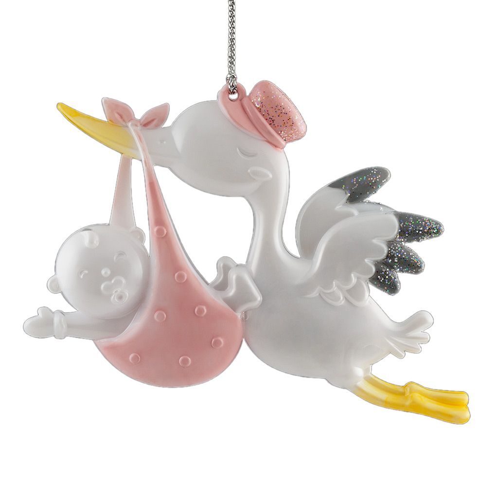 Композиция в виде аиста с младенцем - отличный презент для молодой семьи, ожидающей малыша, или напоминание о радостном событии тем, у кого ребёнок родился в этом году. Украшение станет прекрасным дополнением к новогодней ёлке и будет напоминать о самом особенном событии в жизни. Перламутровое покрытие придаёт украшению нежность и элегантность. Техническая упаковка - полибэг, только для безопасной транспортировки и хранения.