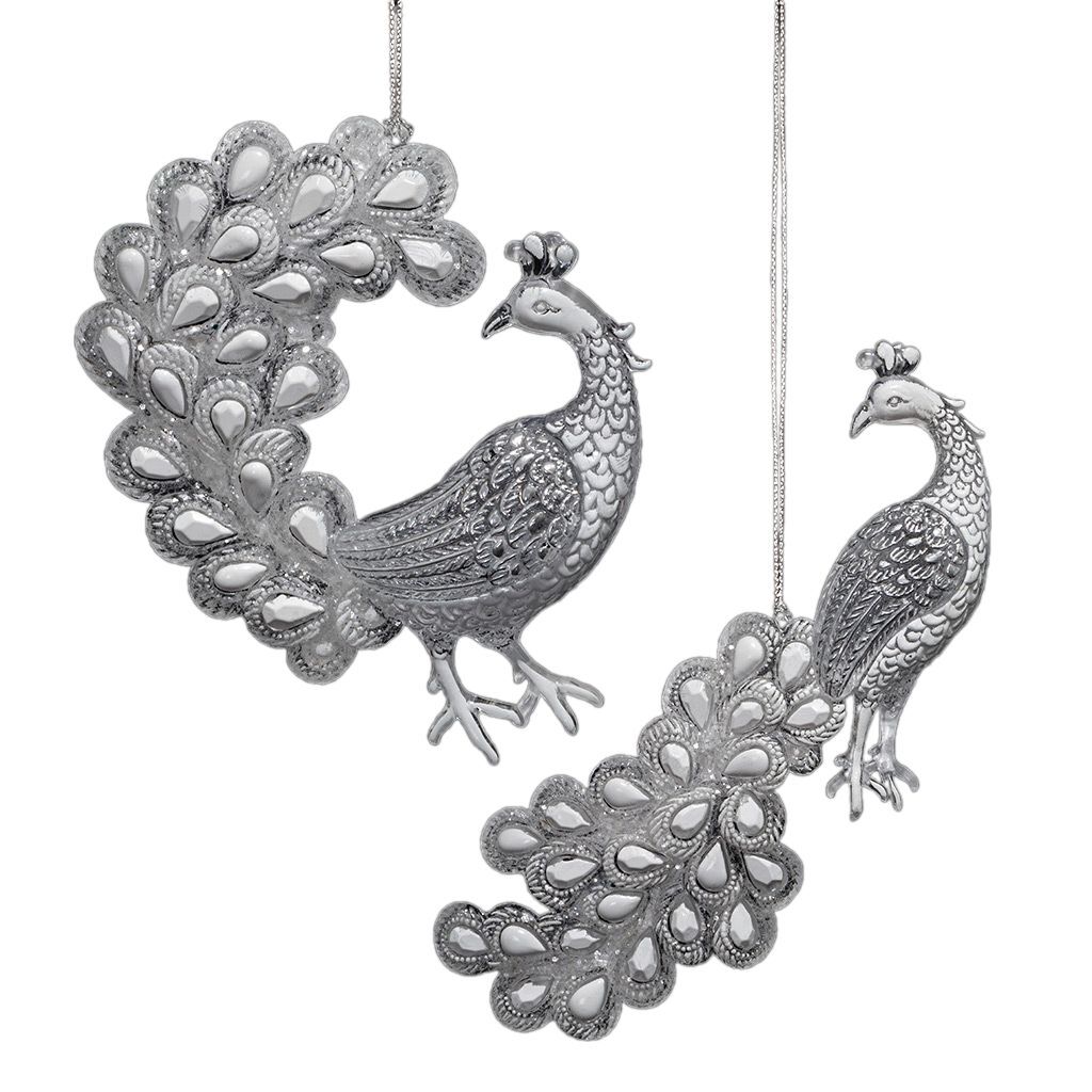 Рельефный павлин покрыт белой и серебряной краской. Лицевая часть роскошного хвоста декорирована прозрачными блестками, создающими эффект заснеженности. Товар поставляется в нескольких вариантах цвета/дизайна без возможности выбора. Техническая упаковка - полибэг, только для безопасной транспортировки и хранения.