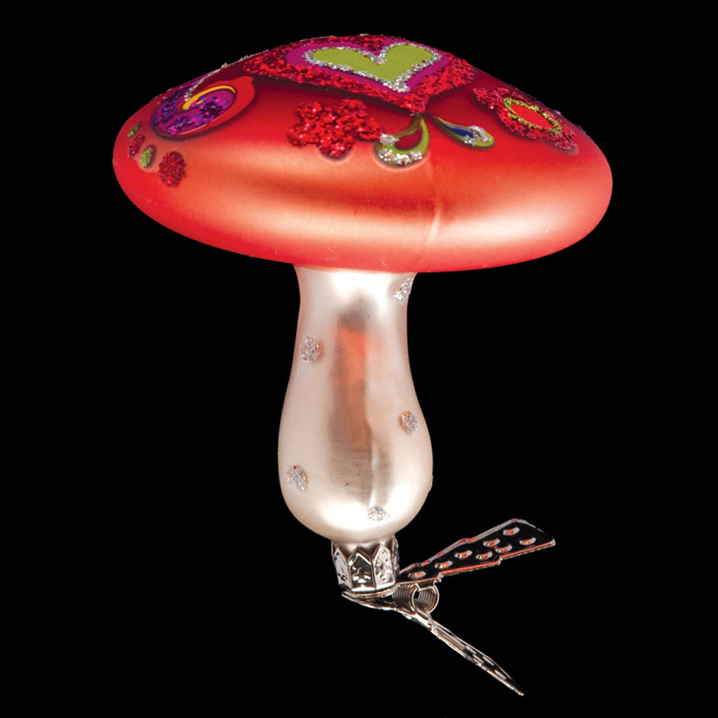 Крупный стеклянный гриб легко крепится на еловую ветку с помощью металлического клипа. Товар поставляется в нескольких вариантах цвета/дизайна без возможности выбора. Групповая упаковка предназначена только для безопасной транспортировки и хранения.