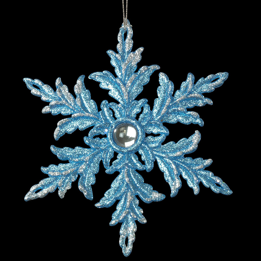 Яркая снежинка декорирована блестками и большой стразой. Контраст глубокого голубого и серебряного цветов выгодно подчеркивают блестки. Подходит для украшения елки и помещений. Техническая упаковка - полибэг, только для безопасной транспортировки и хранения.