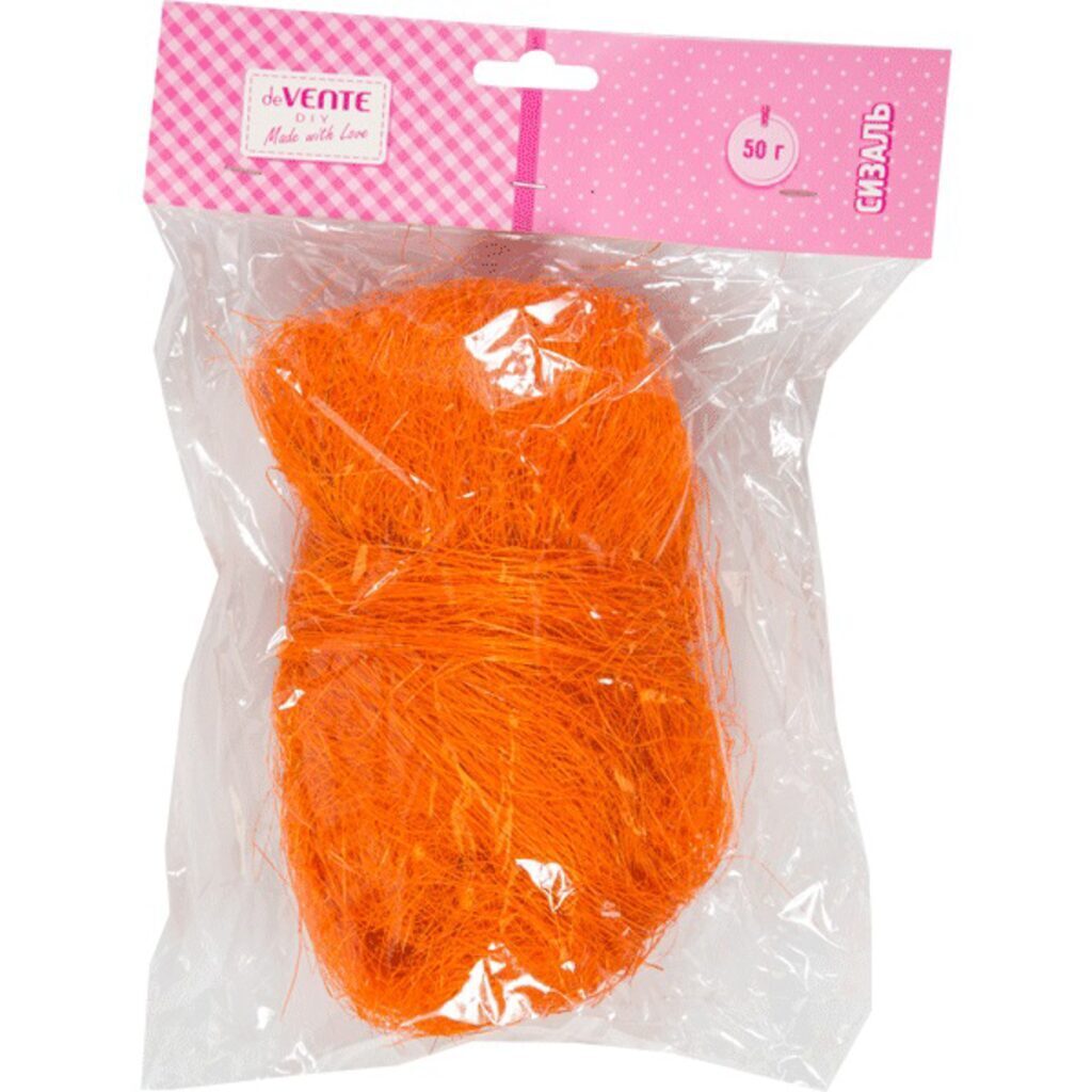 Волокно сизалевое натуральное "deVENTE" 50 г, оранжевое, в пластиковом пакете с блистерным подвесом