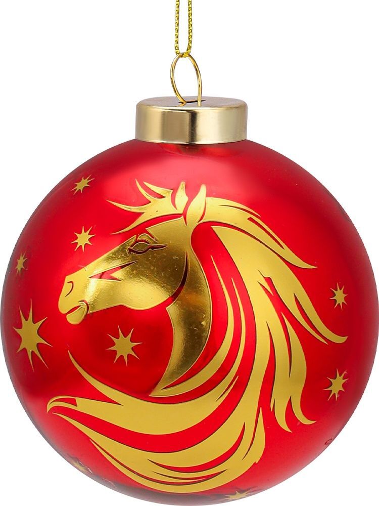Ёлочный шар 8 см "Праздничная лошадь" Символ года СТЕКЛО