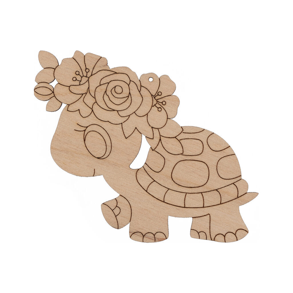 Заготовка деревянная Подвеска "Черепаха с цветами" 8*9см