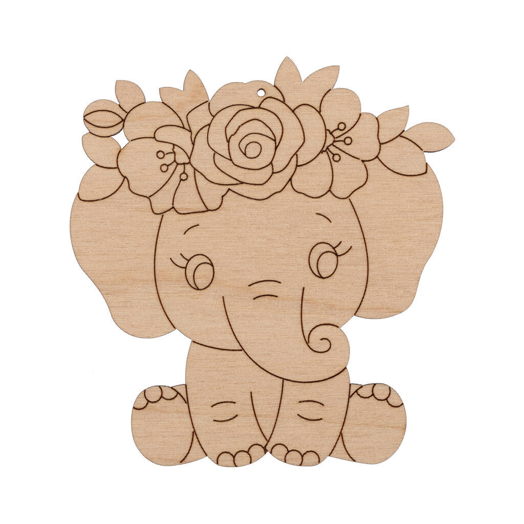 Заготовка деревянная Подвеска "Слонёнок с цветами" 8*9см