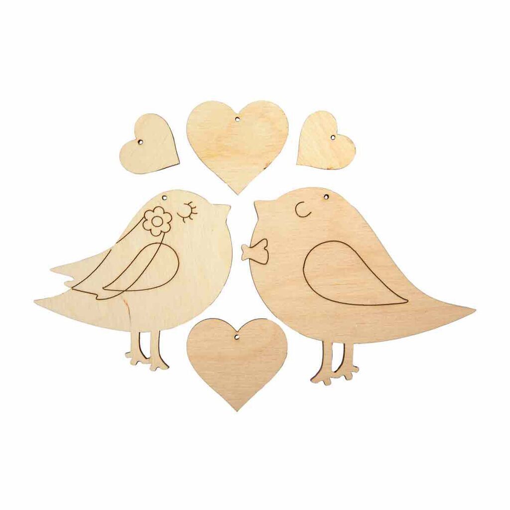 Заготовка деревянная Подвеска "Влюбленные птички" 2шт