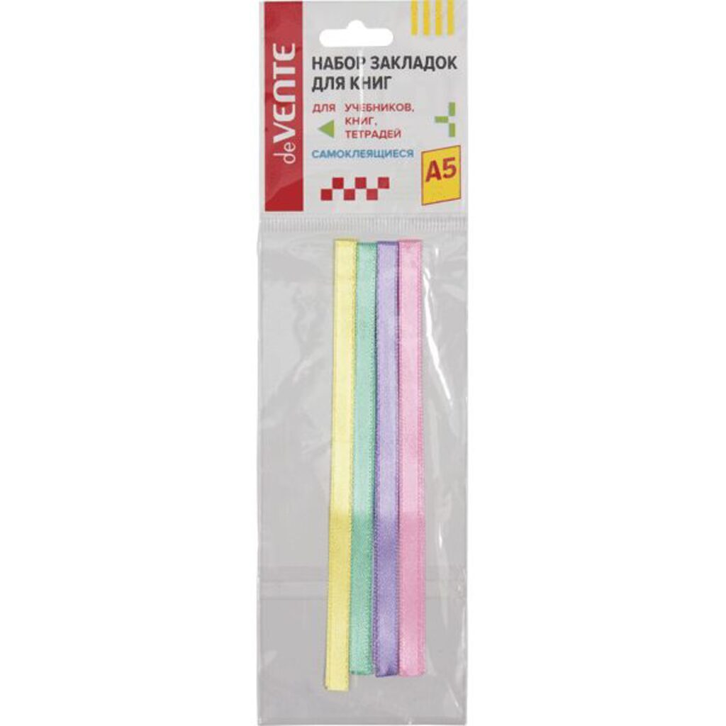 Набор закладок-ляссе "deVENTE. Bright" самоклеящихся для книг формата A5, 4 тонких ленты 6x290 мм, двусторонняя плотная лента, в пластиковом пакете