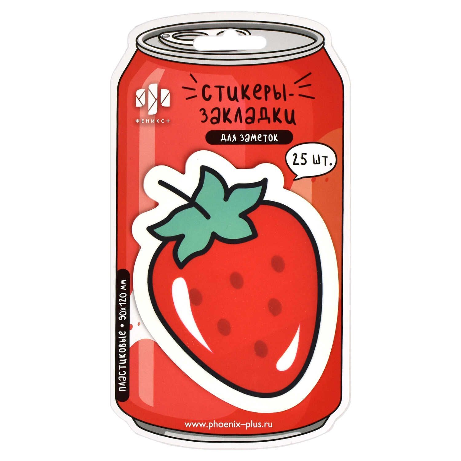 Закладки с липким краем (100*104мм) 1 цв, по 25л. "Клубника" пластиковые