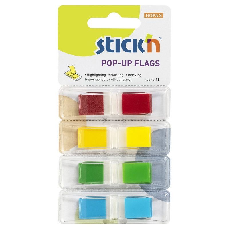 Набор самоклеящихся пластиковых закладок Hopax Stick`n для индексной маркировки на различных материалах. Полупрозрачные, не скрывают текст. В упаковке 4 цвета по 35 листов каждого. Удобный 'флажок' для захвата, без клеевой основы. Яркая оптимистичная палитра оттенков. Можно делать пометки маркерами без повреждения оригинала текста. Размеры: 45x12 мм