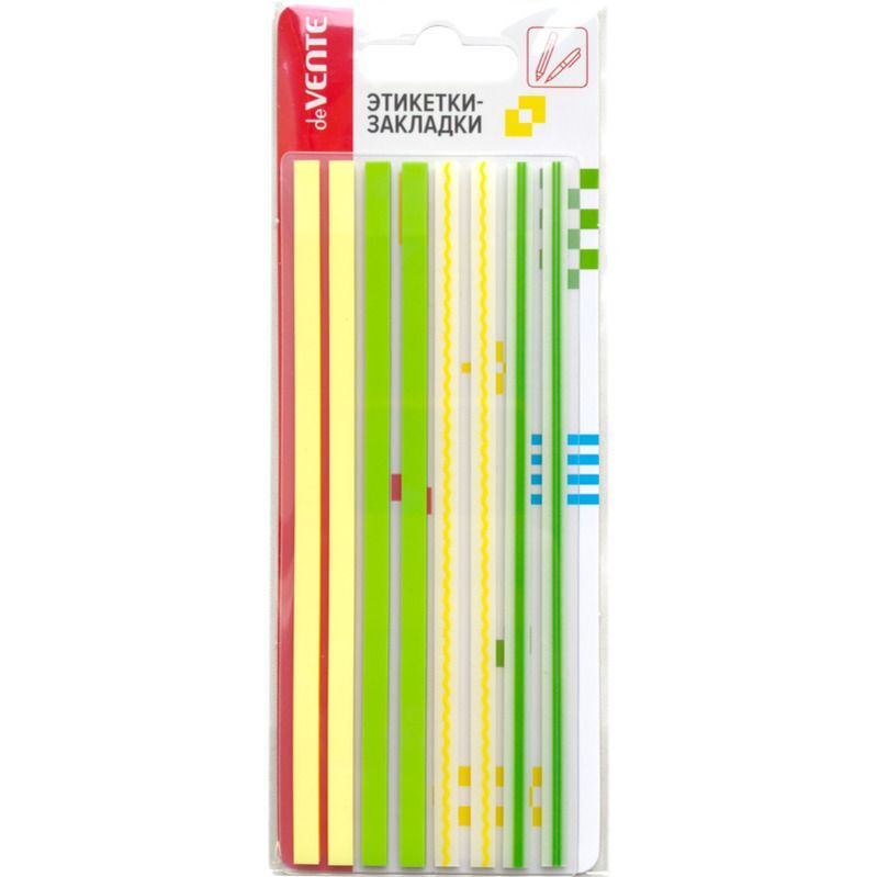 Набор самоклеящихся этикеток-закладок "deVENTE" пластиковые полупрозрачные с дизайном, 140x5 мм, 8x20 листов, 4 дизайна, в картонном блистере и пластиковом пакете с европодвесом, желтые