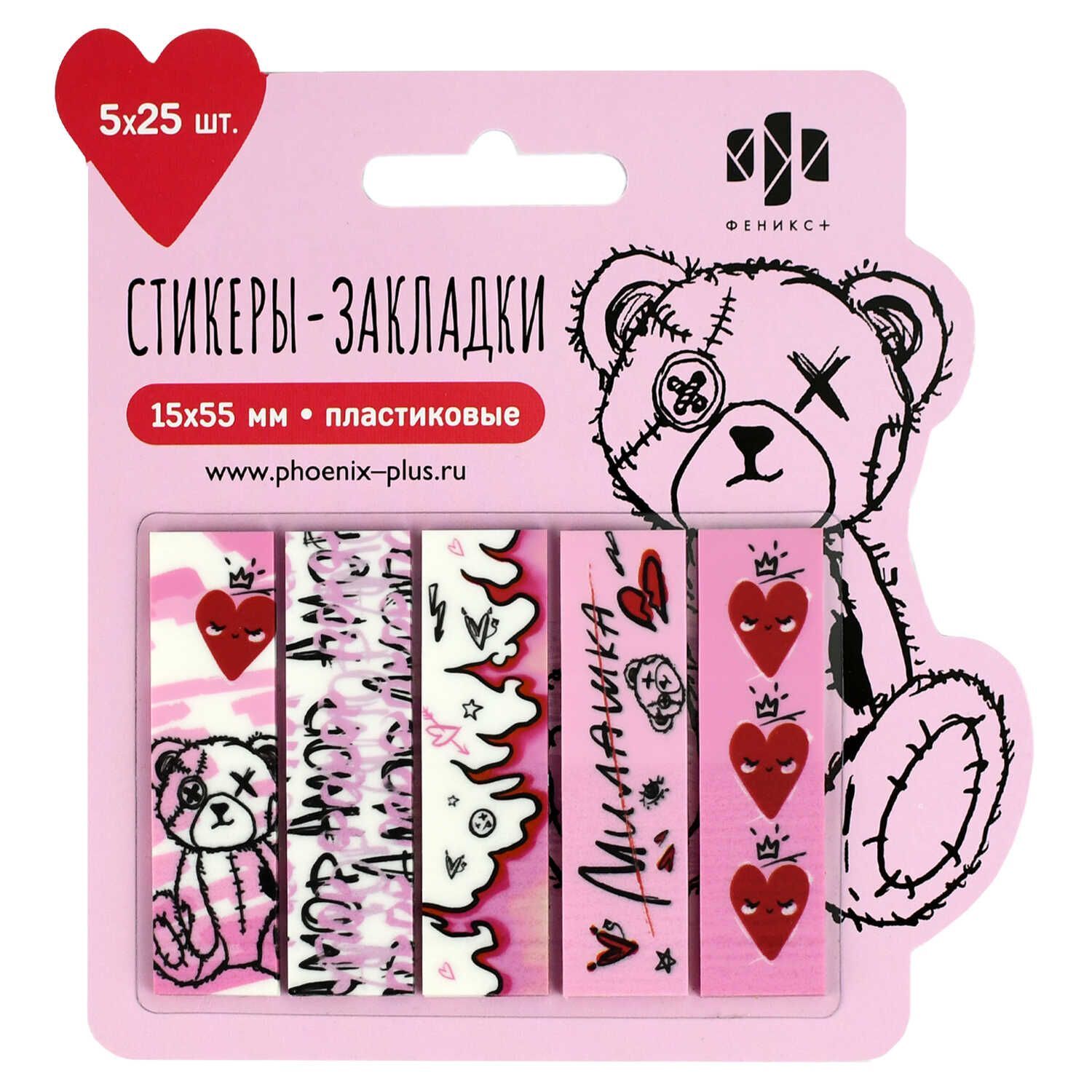 Закладки с липким краем (15*55мм) 5 цв, по 25л. "Амор" пластиковые