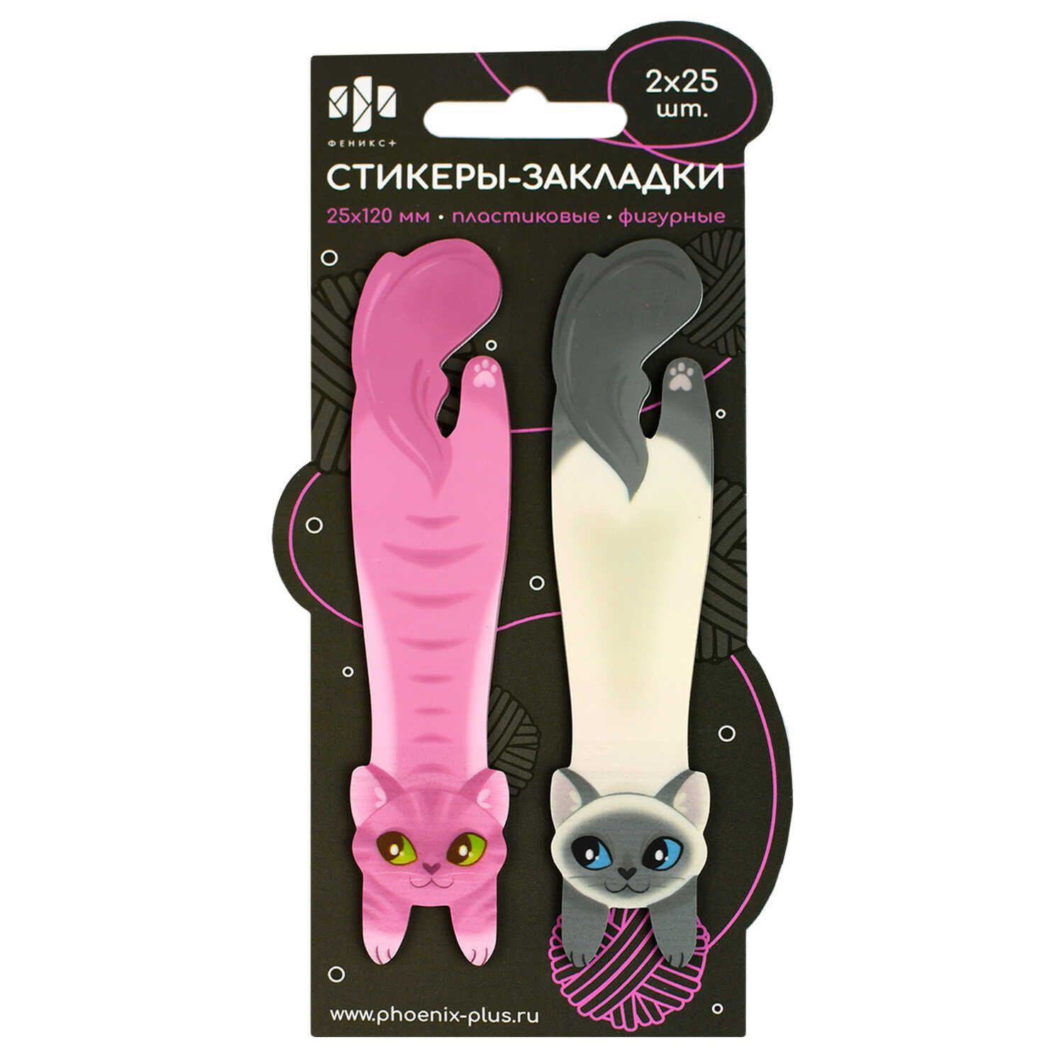Закладки с липким краем (25*120мм) 2 цв, по 25л. "Коты" пластиковые