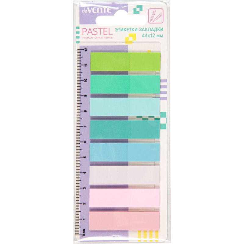 Набор самоклеящихся этикеток-закладок "deVENTE. Pastel" пластиковые полупрозрачные 44x12 мм, 8x20 листов, 8 пастельных цветов, в картонном блистере и пластиковом пакете с европодвесом
