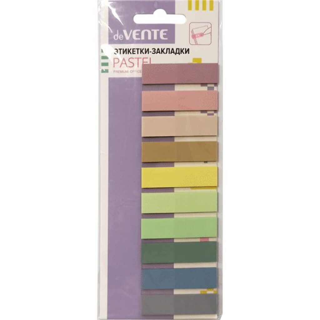 Набор самоклеящихся этикеток-закладок "deVENTE. Pastel" пластиковые полупрозрачные 45x12 мм, 10x20 листов, 10 пастельных цветов, в картонном блистере и пластиковом пакете с европодвесом