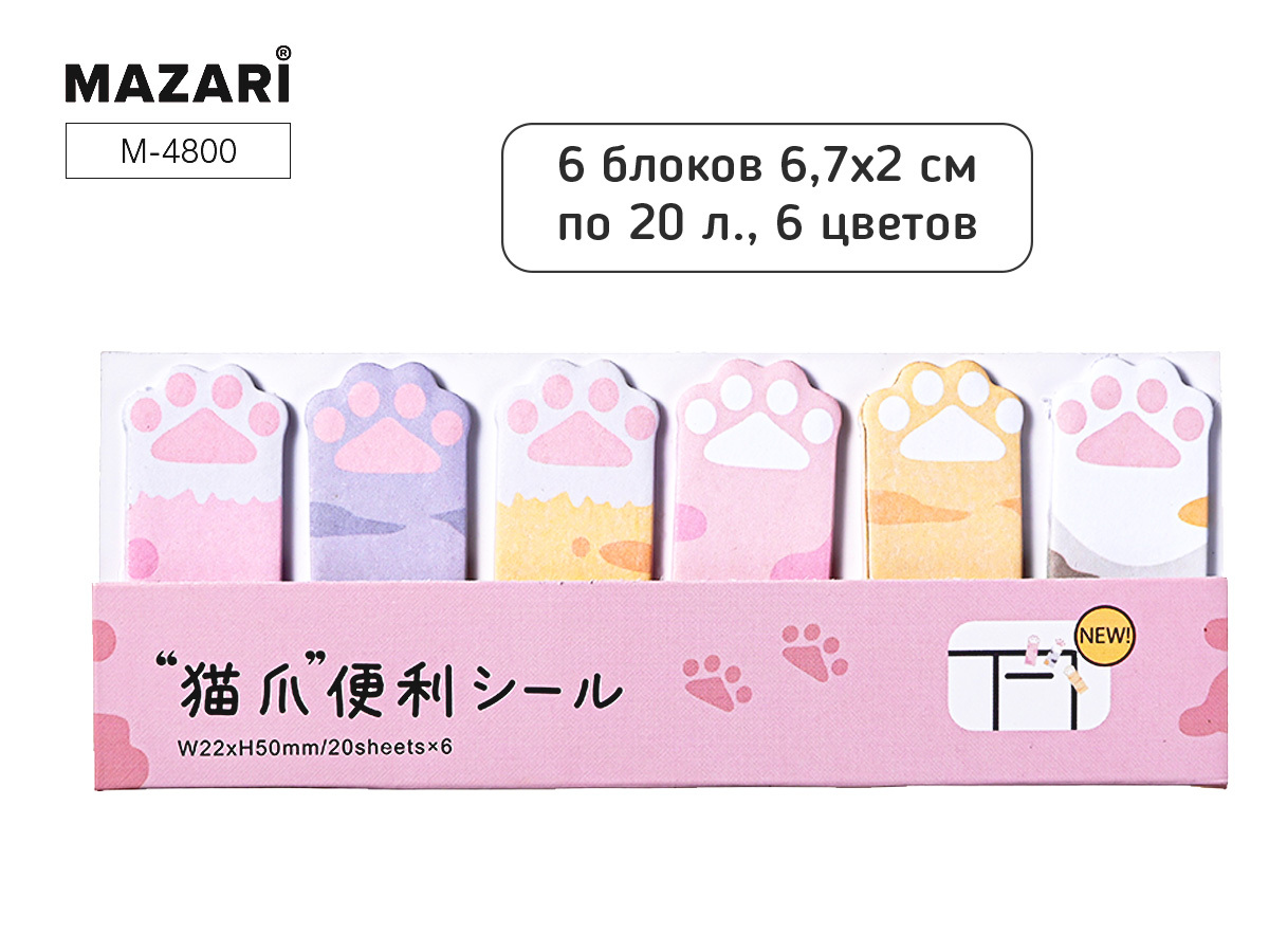 Закладки с липким краем 6цв. по 20л. "Лапки"