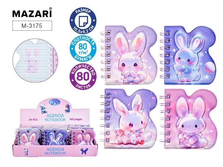 Записная книжка А7 80л. гребень ПВХ "Нео зайка" лин., мягк.обл.